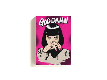 "GODDAMN!" ist in drei hochwertigen Materialvarianten erhältlich: Leinwand mit handgefertigtem 8-Farb-Pigmentdruck und formstabilem Keilrahmen, Aluminium mit kratzfester Oberfläche und 3mm starker Aluminiumplatte, sowie Acrylglas mit 5mm extra-starkem Material und faszinierender Tiefenwirkung. Alle Varianten werden in deutscher Manufaktur in sorgfältiger Handarbeit hergestellt.