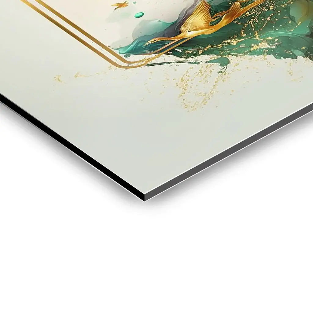 "GOLDEN CAGE ESCAPE" ist in drei hochwertigen Materialvarianten erhältlich: Leinwand mit handgefertigtem 8-Farb-Pigmentdruck und formstabilem Keilrahmen, Aluminium mit kratzfester Oberfläche und 3mm starker Aluminiumplatte, sowie Acrylglas mit 5mm extra-starkem Material und faszinierender Tiefenwirkung. Alle Varianten werden in deutscher Manufaktur in sorgfältiger Handarbeit hergestellt.