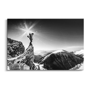 "LIFE AT THE TOP" ist in drei hochwertigen Materialvarianten erhältlich: Leinwand mit handgefertigtem 8-Farb-Pigmentdruck und formstabilem Keilrahmen, Aluminium mit kratzfester Oberfläche und 3mm starker Aluminiumplatte, sowie Acrylglas mit 5mm extra-starkem Material und faszinierender Tiefenwirkung. Alle Varianten werden in deutscher Manufaktur in sorgfältiger Handarbeit hergestellt.