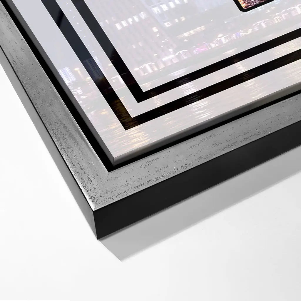 - Rückseitiger Rahmen in Galeriequalität für höchste Stabilität und schwebende Optik