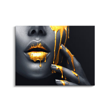 "GOLDEN LIPS" ist in drei hochwertigen Materialvarianten erhältlich: Leinwand mit handgefertigtem 8-Farb-Pigmentdruck und formstabilem Keilrahmen, Aluminium mit kratzfester Oberfläche und 3mm starker Aluminiumplatte, sowie Acrylglas mit 5mm extra-starkem Material und faszinierender Tiefenwirkung. Alle Varianten werden in deutscher Manufaktur in sorgfältiger Handarbeit hergestellt.
