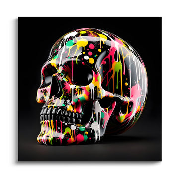 "RAINBOW SKULL" ist in drei hochwertigen Materialvarianten erhältlich: Leinwand mit handgefertigtem 8-Farb-Pigmentdruck und formstabilem Keilrahmen, Aluminium mit kratzfester Oberfläche und 3mm starker Aluminiumplatte, sowie Acrylglas mit 5mm extra-starkem Material und faszinierender Tiefenwirkung. Alle Varianten werden in deutscher Manufaktur in sorgfältiger Handarbeit hergestellt.