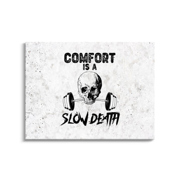 Pack dein "SLOW DEATH" Wandbild vorsichtig aus der Verpackung. Bei Acrylglas-Varianten ziehe die Schutzfolie ab. Prüfe das Bild auf Transportschäden und lege alle mitgelieferten Aufhänge-Komponenten bereit.