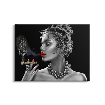 "SMOKING MONEY" ist in drei hochwertigen Materialvarianten erhältlich: Leinwand mit handgefertigtem 8-Farb-Pigmentdruck und formstabilem Keilrahmen, Aluminium mit kratzfester Oberfläche und 3mm starker Aluminiumplatte, sowie Acrylglas mit 5mm extra-starkem Material und faszinierender Tiefenwirkung. Alle Varianten werden in deutscher Manufaktur in sorgfältiger Handarbeit hergestellt.