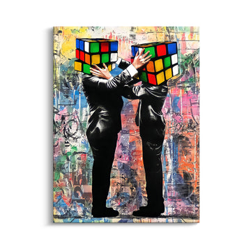 Pack dein "Complex Heads" Wandbild vorsichtig aus der Verpackung. Bei Acrylglas-Varianten ziehe die Schutzfolie ab. Prüfe das Bild auf Transportschäden und lege alle mitgelieferten Aufhänge-Komponenten bereit.