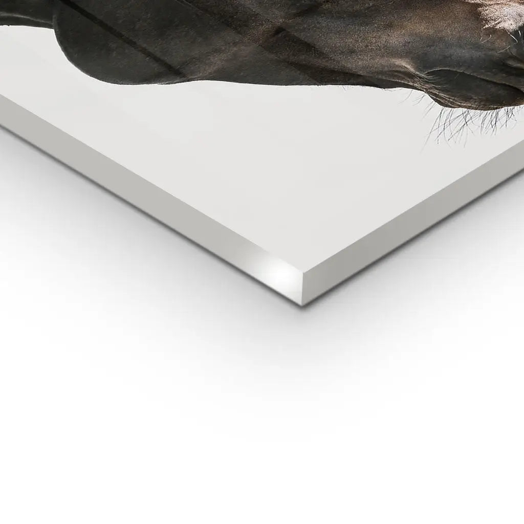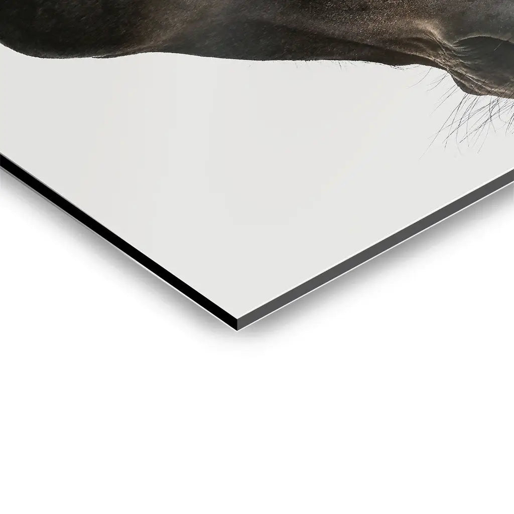 "GENTLE EQUINE GAZE" ist in drei hochwertigen Materialvarianten erhältlich: Leinwand mit handgefertigtem 8-Farb-Pigmentdruck und formstabilem Keilrahmen, Aluminium mit kratzfester Oberfläche und 3mm starker Aluminiumplatte, sowie Acrylglas mit 5mm extra-starkem Material und faszinierender Tiefenwirkung. Alle Varianten werden in deutscher Manufaktur in sorgfältiger Handarbeit hergestellt.