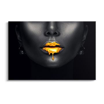 "GOLDEN KISS" ist in drei hochwertigen Materialvarianten erhältlich: Leinwand mit handgefertigtem 8-Farb-Pigmentdruck und formstabilem Keilrahmen, Aluminium mit kratzfester Oberfläche und 3mm starker Aluminiumplatte, sowie Acrylglas mit 5mm extra-starkem Material und faszinierender Tiefenwirkung. Alle Varianten werden in deutscher Manufaktur in sorgfältiger Handarbeit hergestellt.