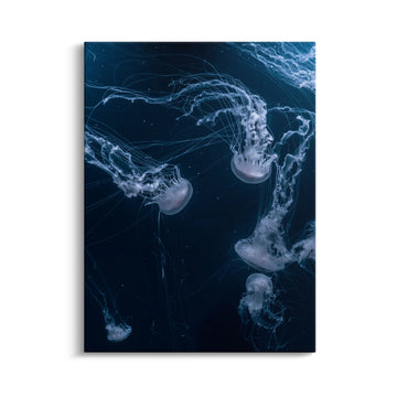 "JELLYFISH FAMILY" ist in drei hochwertigen Materialvarianten erhältlich: Leinwand mit handgefertigtem 8-Farb-Pigmentdruck und formstabilem Keilrahmen, Aluminium mit kratzfester Oberfläche und 3mm starker Aluminiumplatte, sowie Acrylglas mit 5mm extra-starkem Material und faszinierender Tiefenwirkung. Alle Varianten werden in deutscher Manufaktur in sorgfältiger Handarbeit hergestellt.