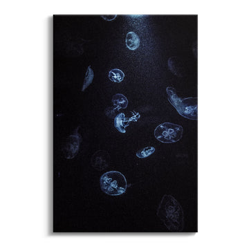 "JELLYFISH SCHOOL" ist in drei hochwertigen Materialvarianten erhältlich: Leinwand mit handgefertigtem 8-Farb-Pigmentdruck und formstabilem Keilrahmen, Aluminium mit kratzfester Oberfläche und 3mm starker Aluminiumplatte, sowie Acrylglas mit 5mm extra-starkem Material und faszinierender Tiefenwirkung. Alle Varianten werden in deutscher Manufaktur in sorgfältiger Handarbeit hergestellt.