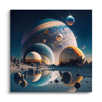 "SPACE DREAM" ist in drei hochwertigen Materialvarianten erhältlich: Leinwand mit handgefertigtem 8-Farb-Pigmentdruck und formstabilem Keilrahmen, Aluminium mit kratzfester Oberfläche und 3mm starker Aluminiumplatte, sowie Acrylglas mit 5mm extra-starkem Material und faszinierender Tiefenwirkung. Alle Varianten werden in deutscher Manufaktur in sorgfältiger Handarbeit hergestellt.