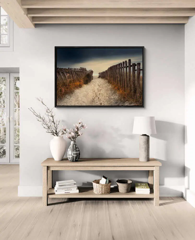Pack dein "THE PATH THAT LED TO YOU" Wandbild vorsichtig aus der Verpackung. Bei Acrylglas-Varianten ziehe die Schutzfolie ab. Prüfe das Bild auf Transportschäden und lege alle mitgelieferten Aufhänge-Komponenten bereit.