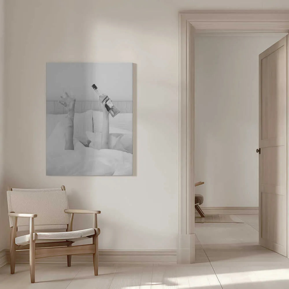 "APEROL IN BED LOW KEY" ist in drei hochwertigen Materialvarianten erhältlich: Leinwand mit handgefertigtem 8-Farb-Pigmentdruck und formstabilem Keilrahmen, Aluminium mit kratzfester Oberfläche und 3mm starker Aluminiumplatte, sowie Acrylglas mit 5mm extra-starkem Material und faszinierender Tiefenwirkung. Alle Varianten werden in deutscher Manufaktur in sorgfältiger Handarbeit hergestellt.