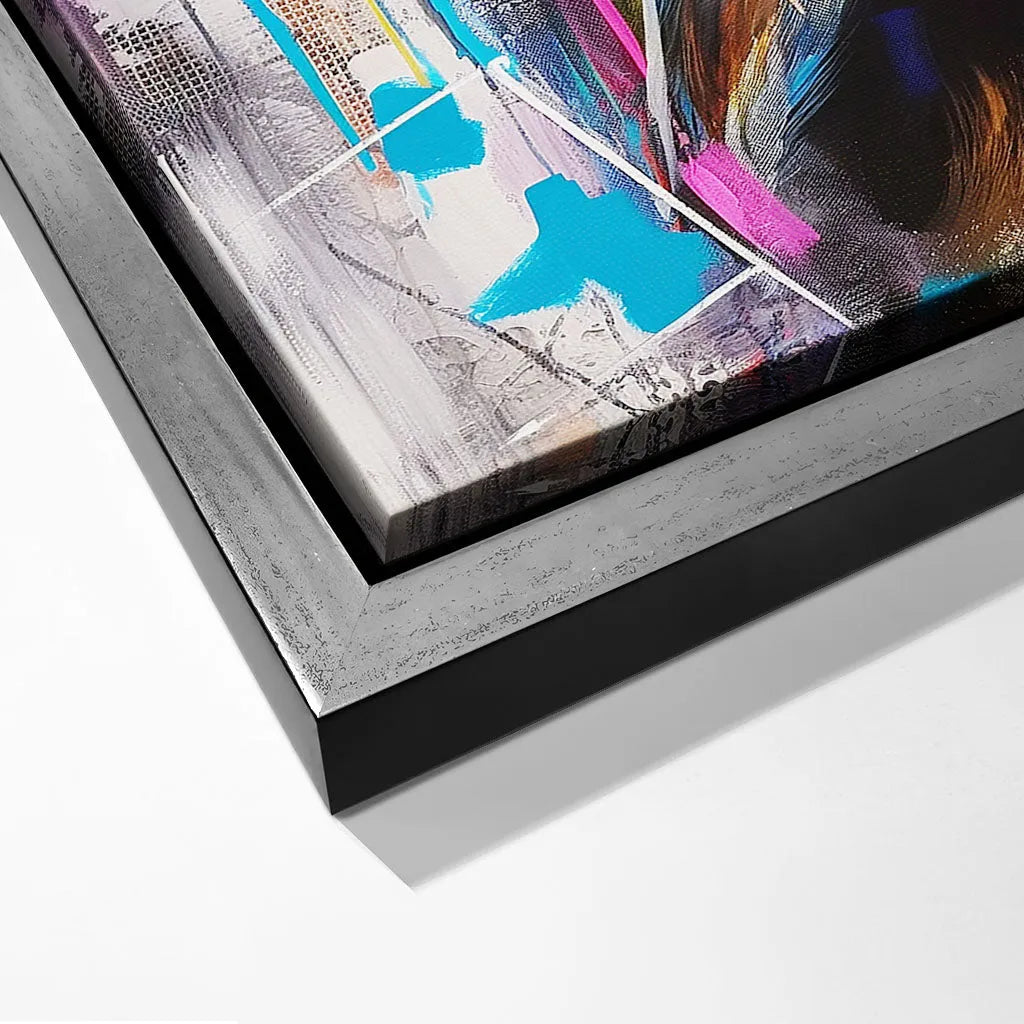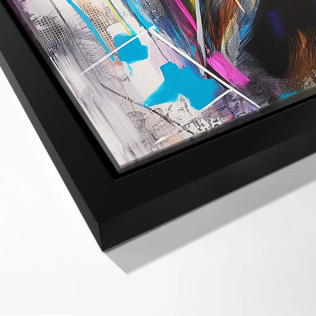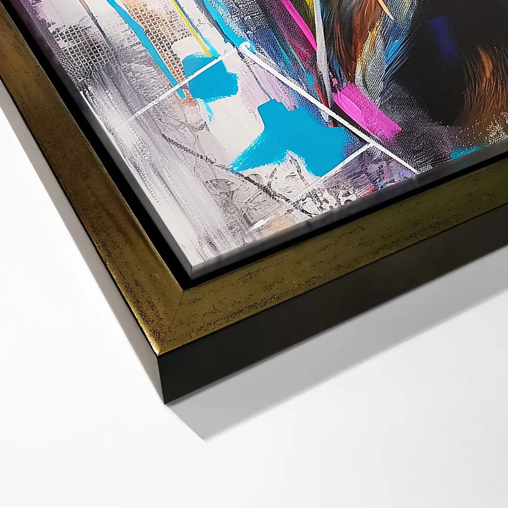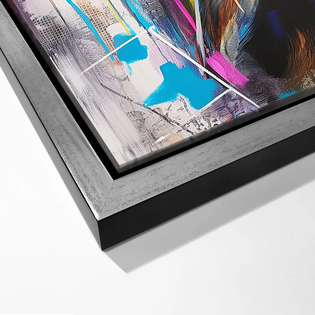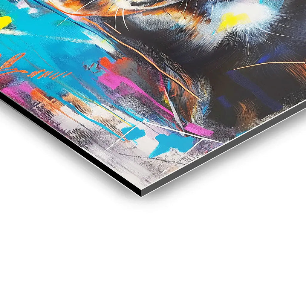 Das Wandbild "Bad Girl" von Canvarisma vereint frechen Hundecharme mit urbaner Kunstexplosion. Dieses ausdrucksstarke Kunstwerk zeigt einen selbstbewussten Chihuahua mit riesigen Stehohren und gepunkteter Sonnenbrille, der direkt in die Kamera schaut. Die Skyline-Reflexion in den Sonnengläsern verleiht dem kleinen Hund großstädtischen Coolness-Faktor. Der explosive Hintergrund aus leuchtenden Farbspritzern in Türkis, Pink, Orange, Gelb und Neongrün sowie expressiven Pinselstrichen schafft eine dynamische Street Art-Ästhetik voller Energie und Lebensfreude.