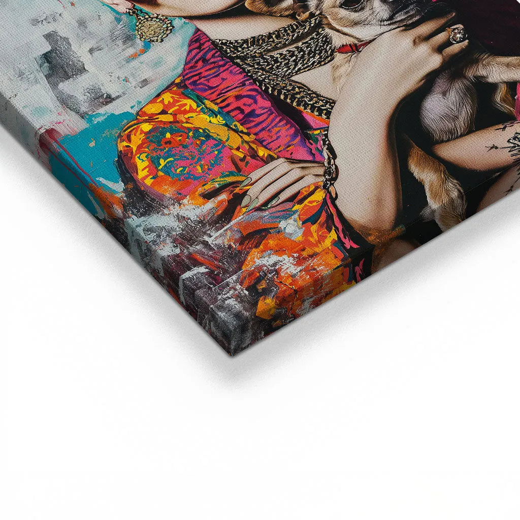 "FRIDA CHIHUAHUA" ist in drei hochwertigen Materialvarianten erhältlich: Leinwand mit handgefertigtem 8-Farb-Pigmentdruck und formstabilem Keilrahmen, Aluminium mit kratzfester Oberfläche und 3mm starker Aluminiumplatte, sowie Acrylglas mit 5mm extra-starkem Material und faszinierender Tiefenwirkung. Alle Varianten werden in deutscher Manufaktur in sorgfältiger Handarbeit hergestellt.