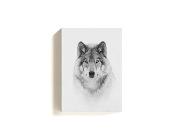 Pack dein "PORTRAIT OF A TIMBER WOLF" Wandbild vorsichtig aus der Verpackung. Bei Acrylglas-Varianten ziehe die Schutzfolie ab. Prüfe das Bild auf Transportschäden und lege alle mitgelieferten Aufhänge-Komponenten bereit.
